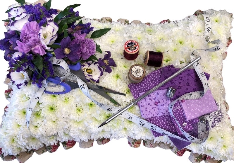 This Pillow was designed for a seamstress. Many themes can be accomplished using the pillow design. Please give us a call to discuss requirements for this design.