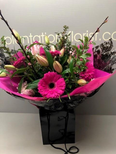 Cerise Gerbera and Pink Lily Bouquet