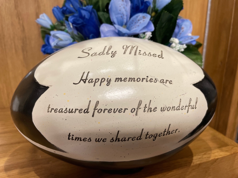 Resin Graveside Rugby ball for that loved one who loved their Rugby